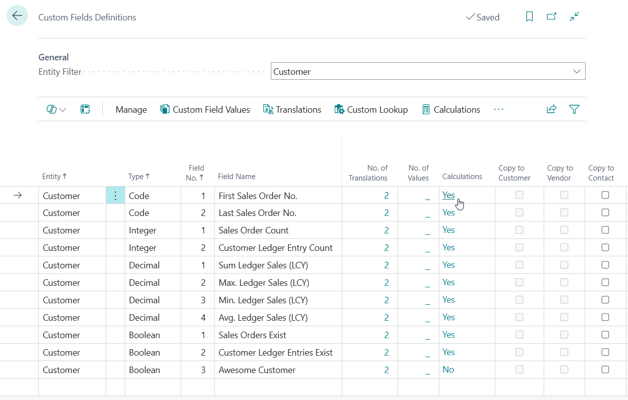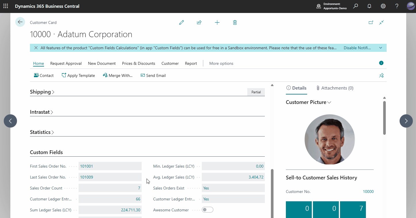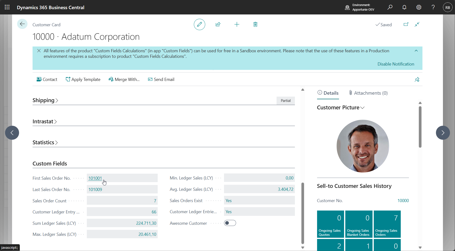 Finally, navigate to the Customer Card of one of the customers in your Business Central environment and find the calculated field(s) that we have added: