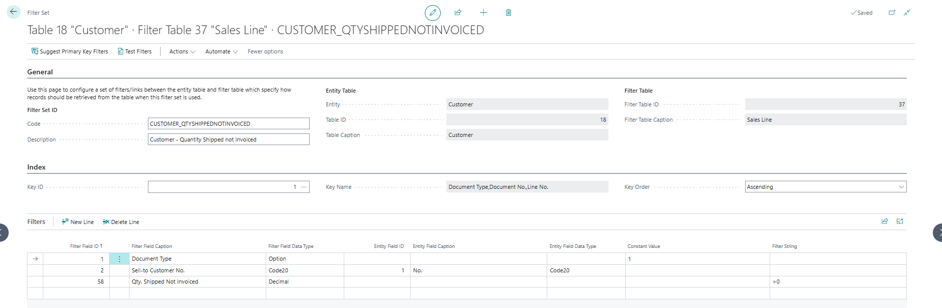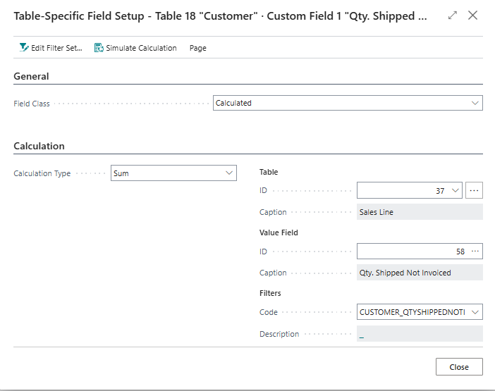 In this example we are going to look at adding a Qty. Shipped Not Invoiced field for entity table = Customer, which "sums the quantity of Qty. Shipped Not Invoiced from the Sales Order lines for the customer". To achieve this, we follow the steps as described in First Sales Order No with the following additions.