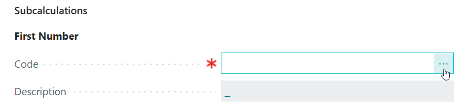 On the First Number - Code page field, click on the Assist-Edit () button to set up the subcalculation to use.