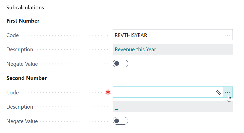 On the Second Number - Code page field, click on the Assist-Edit () button to set up the subcalculation to use.