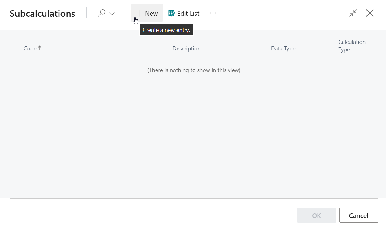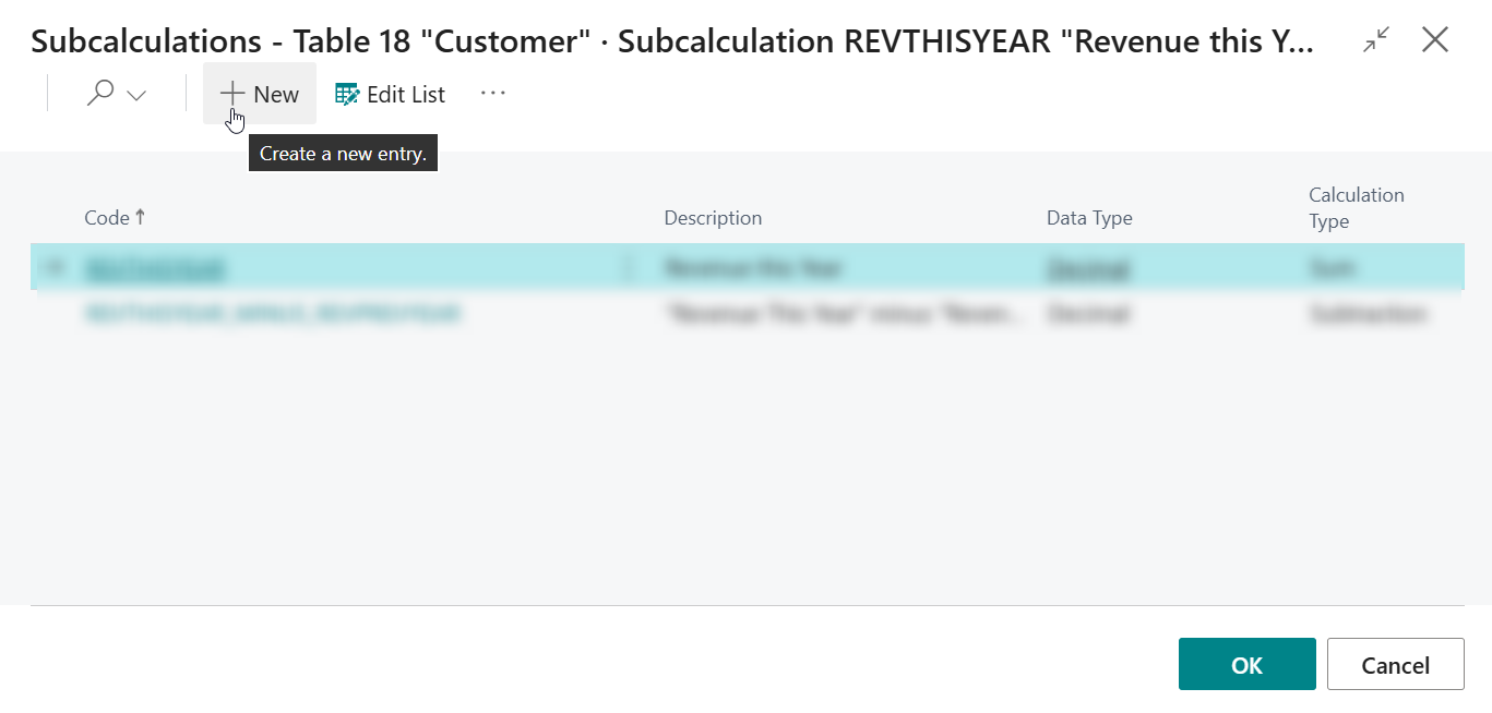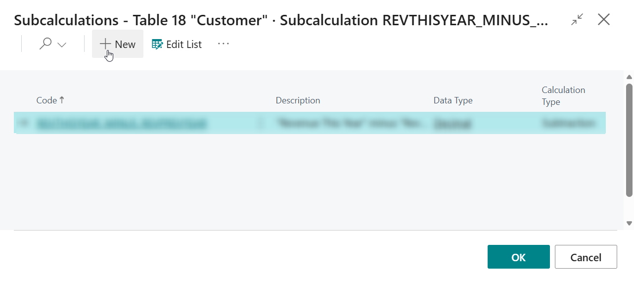 On the page that opens, invoke the New action to create and configure a new subcalculation.