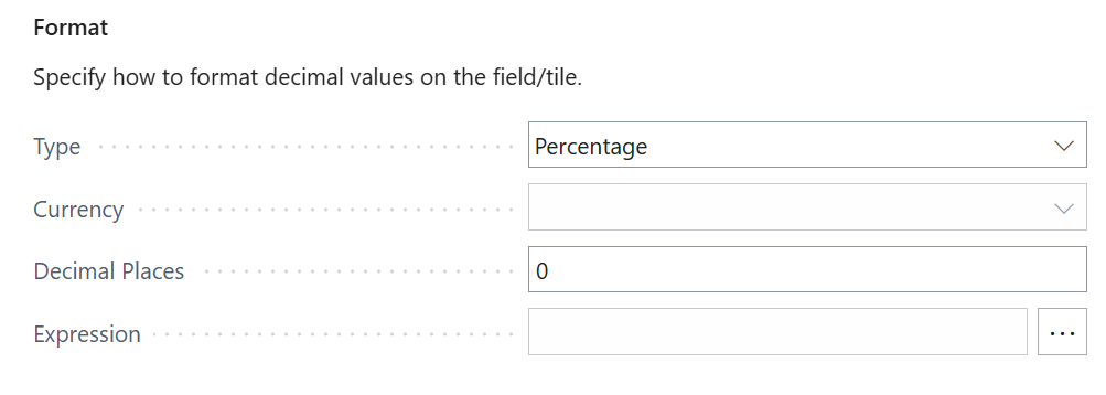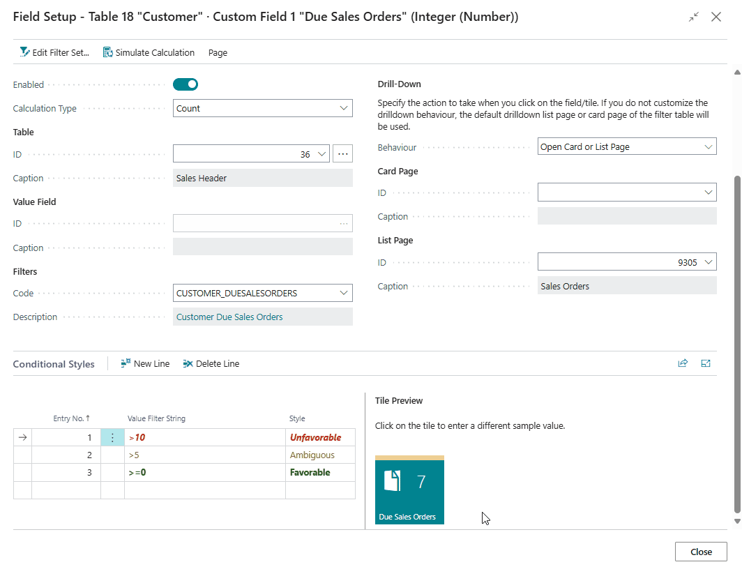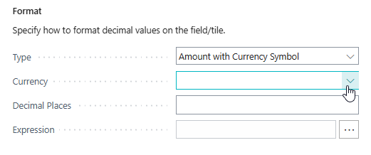 However, you can make calculated fields visible on the Custom Tiles factbox as FactBox Field or Tile for the selected record on the list page. For this, change the Display Type of the calculated field to FactBox Field, Tile or Page Field and Tile.