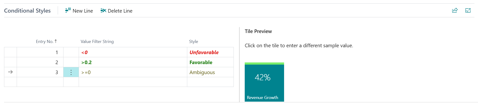 If you want to, you can also Configure Conditional Styles, e.g., when the Revenue Growth is smaller than