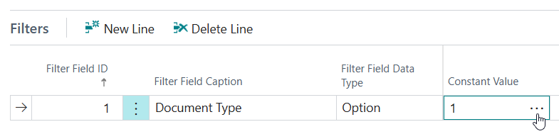 Document Type,No. - Select the right Filters, for this scenario, set them as follows: