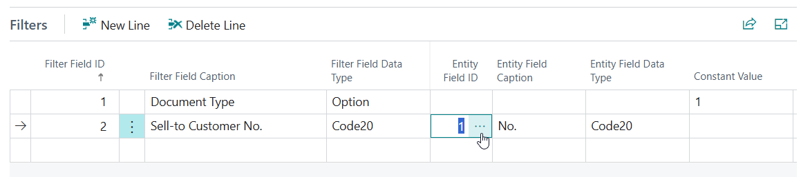 2Sell-to Customer No. must be linked to Entity Field ID =1(No.) - Field ID