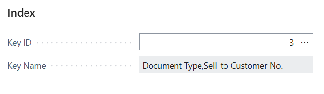 In the Key ID field choose the most appropriate key/index (i.e., typically including the fields on which you intend to filter) The Key Name field shows the corresponding name of the key, displaying the key fields. The Key Order defines if the sorting is ascending or descending.