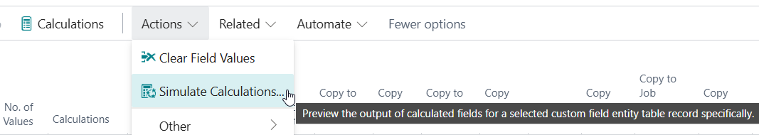 Please note that you can use the Simulate Calculation(s) action (on the Custom Fields Definitions page and Field Setup page) to get an indication/estimate of the time needed to calculate the output of calculated custom fields. This can be a helpful tool to help prevent and/or assess potential performance degredations from calculated custom fields.